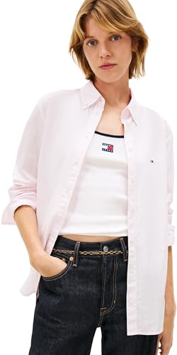 Tommy Jeans dam TJW REG Oxford tröja DW0DW19890 L/S skjorta, rosa (ljusrosa/randig), S, Rosa (ljusrosa/randig), S