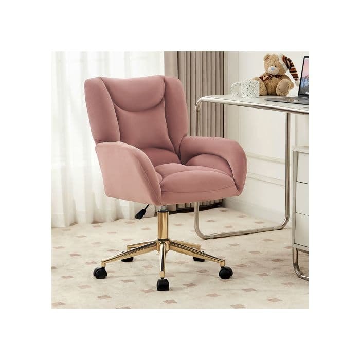 Full KD Sammet Tyg Snurrbar Höjdjusterbar Stol för Hemmakontor, Inomhusbruk, med Guldben, Rosa