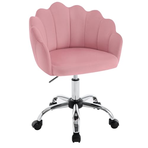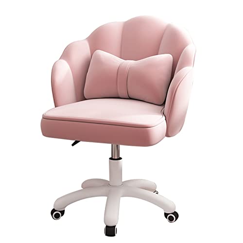 Modern sammet Söt kronbladsskrivbordsstol, höjdjusterbar stol för smink och dator, 360° vridbar stol med stoppat ryggstöd, rosa,