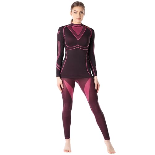 Ladeheid Dam Funktionella Underkläder Set Långärmad Skjorta Långa Underbyxor Termoaktiv LAGI006 (Svart/Rosa, L)