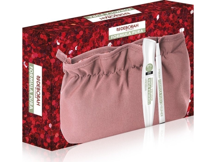 Deborah Set Deborah: Formula Pura, Volumising, Mascara, Svart, 12 Ml + Formula Pura, Gel Pencil Eyeliner, Svart, 1,5 G + Sminkväska, Rosa Dam