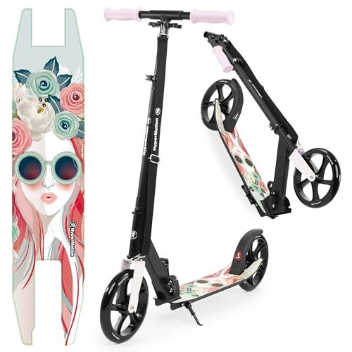HyperMotion Vibe Tvåhjulig skoter för barn från 7 år och tonåringar, maximal belastning 100 kg, hopfällbar aluminium, justerbar styrhöjd, ABEC-7 hjul, 200 mm, rosa