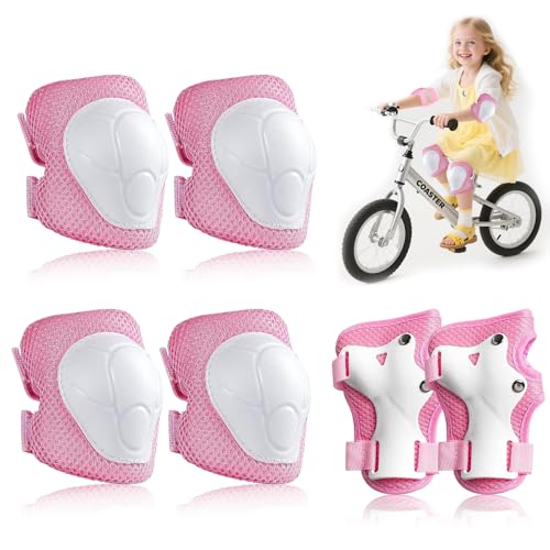 Casenly Knäskydd för barn, 6-i-1-skyddsutrustning, inlines, justerbart skyddset med knäskydd, armbågsskydd och handledsskydd för skoter, skateboard, skidåkning, rosa