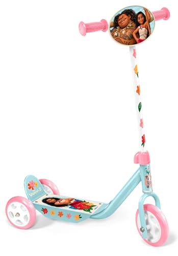 VAIANA 3-hjuls skoter 2 höjdjusterbar. Bred halkfri bricka. Antiklämhandtag. PVC-hjul. Dekorerad platta, rosa-blå
