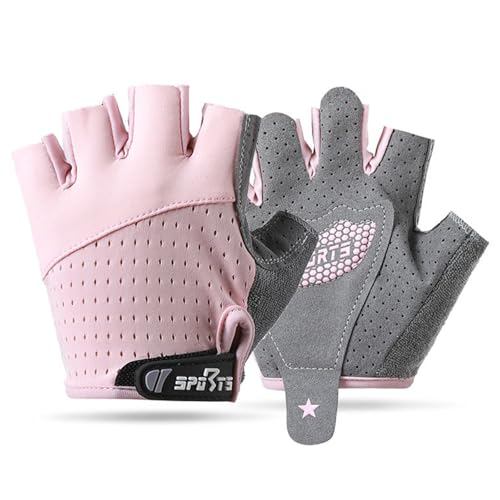 FYting cykelhandskar barn, ridhandskar barn, fingerlösa handskar, bekväma andningsbara, skyddande palmer för skridskoåkning, skoter, utomhussporter, sportutbildning (rosa, M)