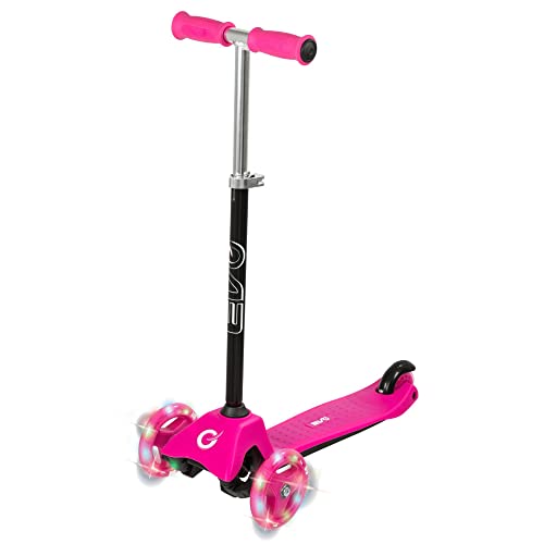 Evo Light Up Mini Cruiser Skoter med Lysande Hjul | Höjdjusterbara Handtag | 3-hjuls Skoter för Barn 2 år (Rosa)