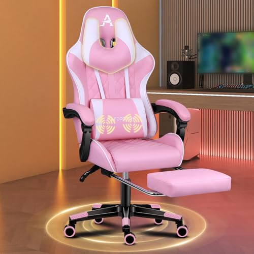ALFORDSON Spelstol med fotstöd och ländryggskudde, ergonomisk datorkontorsstol med 150° lutning, skrivbordsstol för videospel med högt ryggstöd, rosa