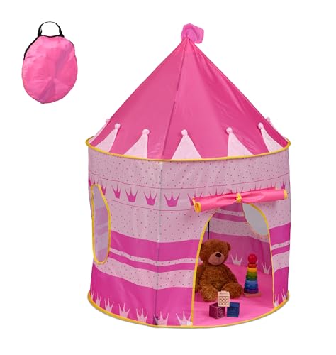 Relaxdays Prinsessa slott lektält inomhus leksak barnrum hxD: 135 x 100 cm, rosa, stål