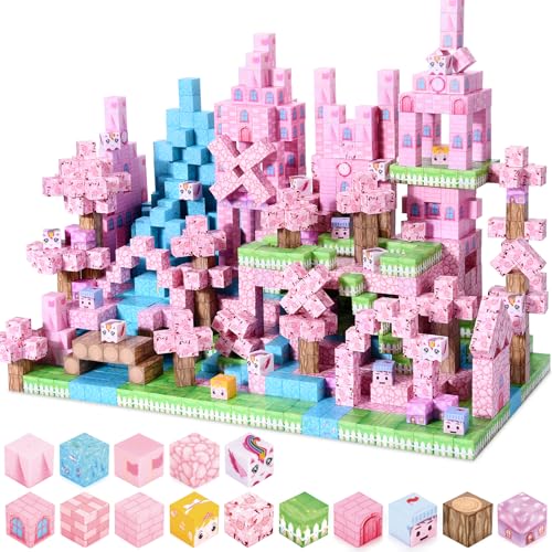 YIHANG 100 st magnetiska block, magnetiska byggklossar, prinsessleksaker för flickor, småbarn, födelsedag, påskgåvor, bygga rosa slott och kakelplattor, STEM konstruktionsleksak för barn flicka 3 4 5