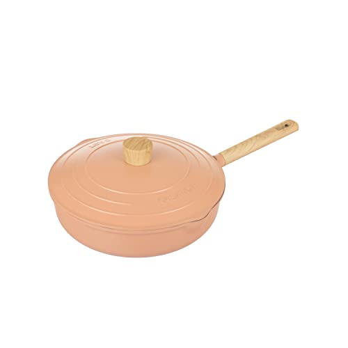 DYGG stekpanna med lock 26 cm belagd stekpanna alla typer av spisar inklusive induktion rosa, fettfri stek, stekpanna set non-stick granitmaterial, 100 % fri från PFAS, PFOA