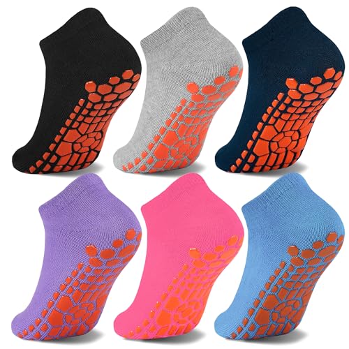 HYCLES Studsmatta strumpor barn halkfria strumpor – halkfria strumpor barn 6 par träningsstrumpor för pojkar flickor 2–13 år, 05# svart + grå + marinblå + medium lila + rosa + blå, 2-5 år