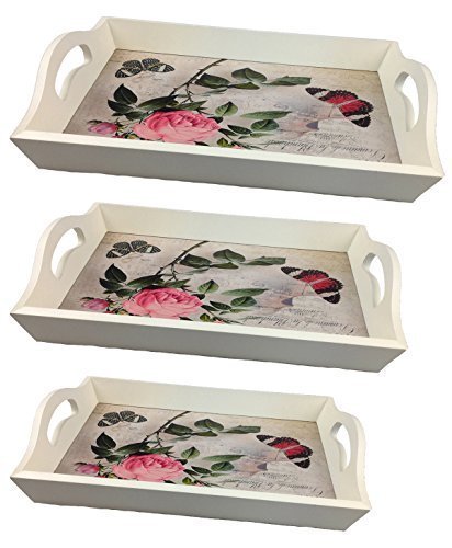 GMMH träskiva fjäril rosa 3-pack set LN47-4 serveringstablett sängbord tablett trä serveringsfat