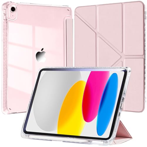 EspZanthic Fodral för iPad (A16) 11:e/10:e Generationen (2025/2022) med Pennhållare, Klar Transparent Tillbaka Skal 6-i-1 Visningsvinklar Stand Stötskyddad Tablett Case, Rosa