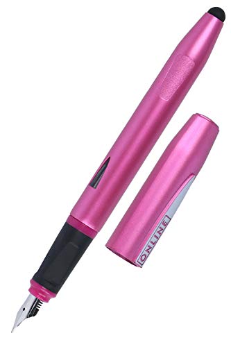 Online Nybörjare reservoarpenna för högerhänta, ergonomisk student penna och penslar, tablett skrivövningspenna, standardpatroner, rosa