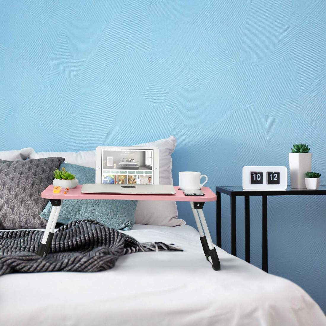 Rosa Lapdesk med tablett- och dryckeshållare – hopfällbar sängbricka