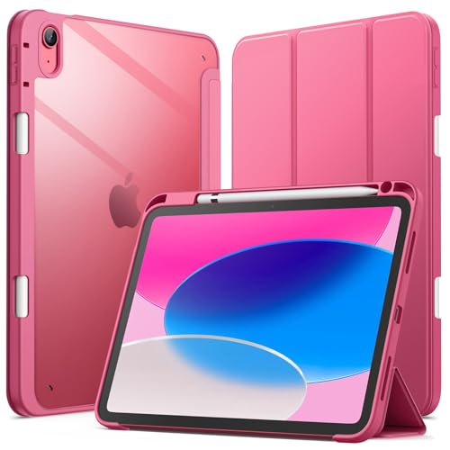 JETech Fodral för iPad (A16) 11:e/10:e Generationen (2025/2022) med Pennhållare, Klar Transparent Tillbaka Skal Smal Stand Stötskyddad Tablett Case (Rosa)