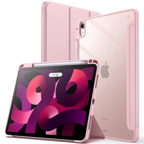 JETech Fodral för iPad Air 11 Tum M3/M2 (2025/2024), iPad Air 5/4 (2022/2020, Femte/Fjärde Gen) Med Pennhållare, Klar Transparent Tillbaka Skal Smal Stand Stötskyddad Tablett Case (Rosa)
