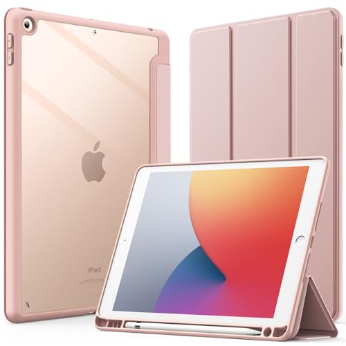 JETech Fodral för iPad 10,2 Tum (9:e/8:e/7:e Generationen, 2021/2020/2019) Med Pennhållare, Klar Transparent Tillbaka Skal Smal Stand Stötskyddad Tablett Case (Rosa Guld)