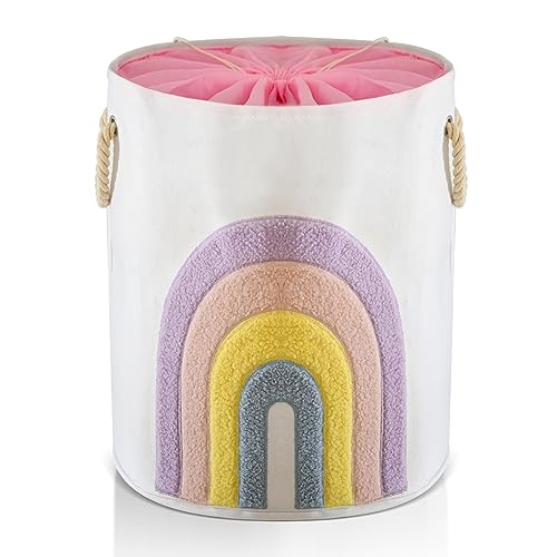 Clastyle 63L boho regnbåge rosa tvättkorg för barn för flickor stora kläder leksaker förvaringskorg med lock för barnkammare, 40 x 50 cm