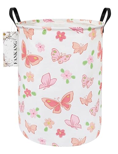 FANKANG Tvättkorg, förvaringskorgar för barnleksaker, barnrum, kontor, sovrum, presentkorg (rund rosa fjäril)