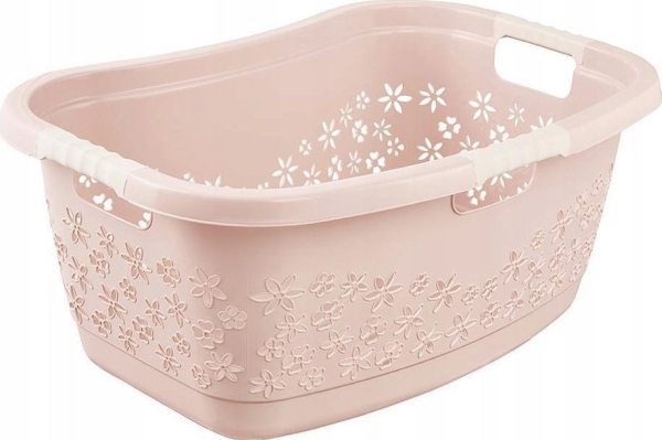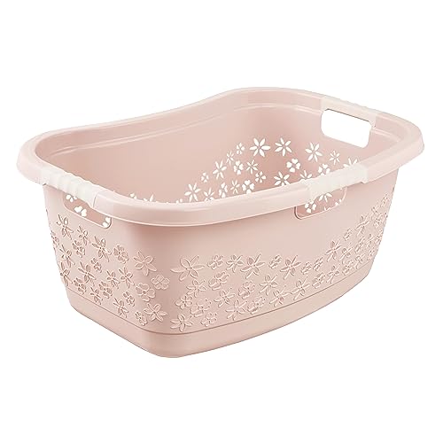 keeeper ergonomisk tvättkorg med luftgenomtränglig dekor, halkfria mjuka handtag, 50 l, lask, nordisk rosa