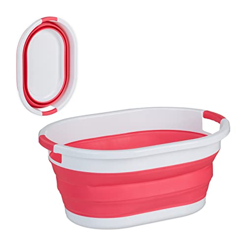 Relaxdays vikbar, tvättkorg, 36 l, plasttvättkorg, platsbesparande hopfällbar, med handtag, rosa/vit, 1 st