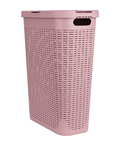 Mind Reader 40 L smal tvättkorg, klädkorg, lock, flätdesign, plast, 45 cm L x 25 cm B x 60 cm H, rosa