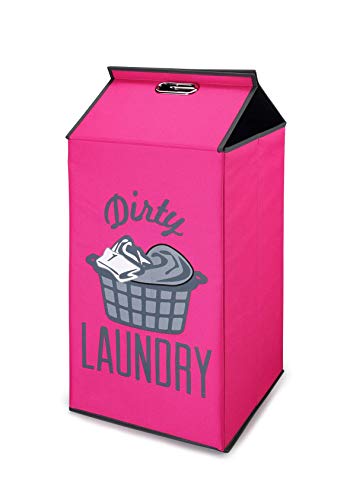 Smart design deluxe nät pop up fyrkantig tvättkorg med sidoficka och handtag - ventilLufttyg hopfällbar design - för kläder och tvätt - hem - (rymmer 2 laster) (14 x 23 tum) [Rosa]