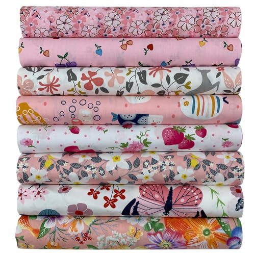 aufodara 8 st. bomullstyg, metervara, tygpaket, 50 x 50 cm tyg, tyger för sömnad, lapptäcke för quiltning, gör-det-själv-hantverk, kvadrater, bomullsduk (rosa)