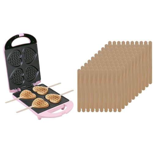 Bestron våffeljärn för hjärtafflor på en pinne, retrodesign, Sweet Dreams, 780 watt, rosa & Silikomart - STICKS - SET 100 träpinnar 113X10 H 2 MM
