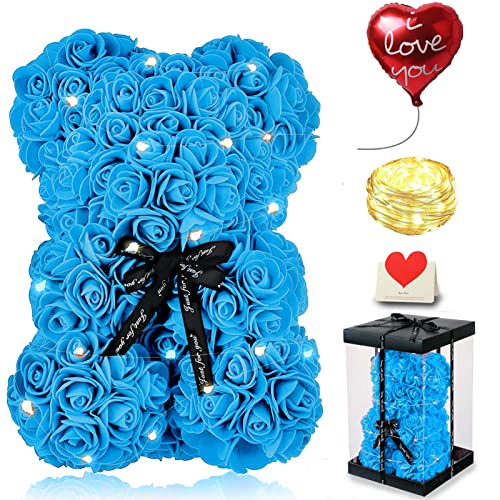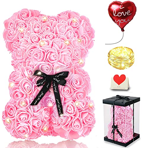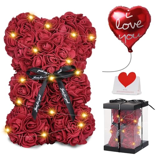 Rose Bear Alla hjärtans dag presenter till henne, Rose nallebjörn med LED-lampor, födelsedagspresenter för kvinnor, romantiska presenter till frun flickvän med transparent presentask och kärlekskort