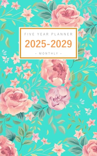 Five Year Planner 2025-2029: 5x8 Monthly Notebook Organizer Small | Vintage Rose Flower Garden Design Turquoise