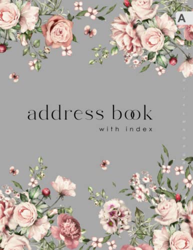 Address Book with A-Z Index: 8.5 x 11 Big Contact & Telephone Notebook Organizer with Alphabet Sections | Watercolor Elegant Rose Peony Design Gray