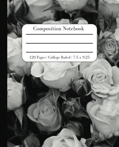 Black and White Floral Aesthetic Composition Notebook - College Ruled, 120 Pages, Compact size of 7.5 x 9.25 Inches - Elegant Rose Design for School, ... - Perfect for Girls, Teens, and Women