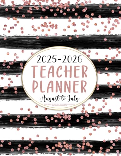 2025-2026 Teacher Planner: Lesson Plan Grade and Record Book | Monthly and Weekly Class Organizer August 2025-July 2026 Academic Year (Pretty Rose Gold Stripes Design)