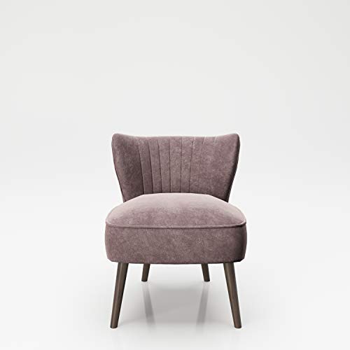 PLAYBOY fåtöljer med ryggstöd, sammetsmaterial, polerad solstol av sammet med broderad och keder, massiva träfötter, cocktailfåtölj, rosa, Rose Quartz, retro-design, Club-stil, lounge, vardagsrum
