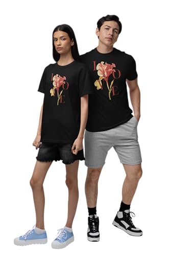 Republic of California Unisex URCTS034-L-BK Love-Rose-Vintage-Design-T-shirt - svart, L, svart, L