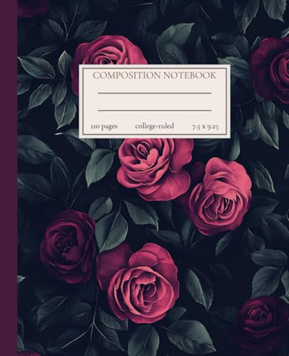Composition Notebook College Ruled: Dark Romantic Rose Floral Design | Elegant Journal for School, Office, and Everyday Use