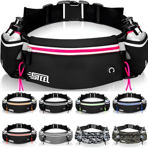 Löparbälte, midjeväska sportbälte med mjuk flaska flaskhållare vattentät ficka herr dam för iPhone smartphone Samsung Galaxy, bekväm jogging fot, 1 stycke, Taille unique, Löpbälte (ROSE)