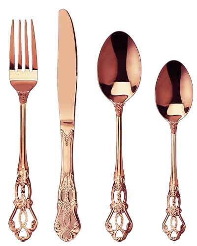 SHEUMNT Retro Rose guld Flatwre Set för 6, ursnyggt 24 delar rostfritt stål porslin, Service för 6, Bestick Set Gaffel Sked Kniv, Antik Barock Bestick Set