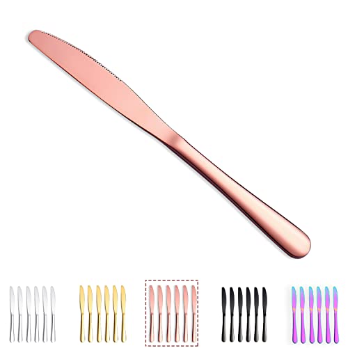 Kyraton Rose guld set med 6 bordsknivar, titanpläterad roséguld rostfritt stål 22,8 cm steak knivar set bord, bestick smörkniv knivar set bestick set.
