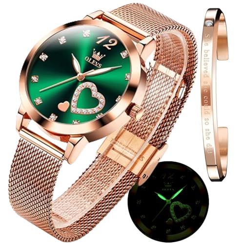OLEVS Womens Klocka Presenter Set med Armband Rose Gold för Lady Kvinna Minimalist Enkel Slim Tunn Casual Analog Quartz Armbandsur Vattentät Tvåton