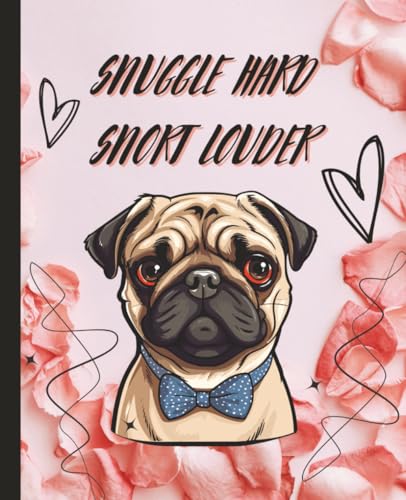 Snuggle Hard Snort Louder Funny Pug Notebook Cute Pink Rose Petals Journal for Women & Dog Moms Perfect Gift for Birthday, Christmas, Valentine’s, ... Occasion 7.5x9.25” 120 Pages Wide Ruled
