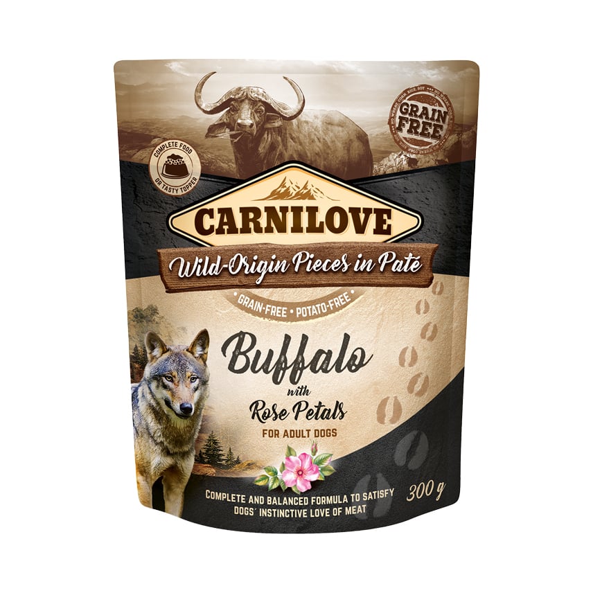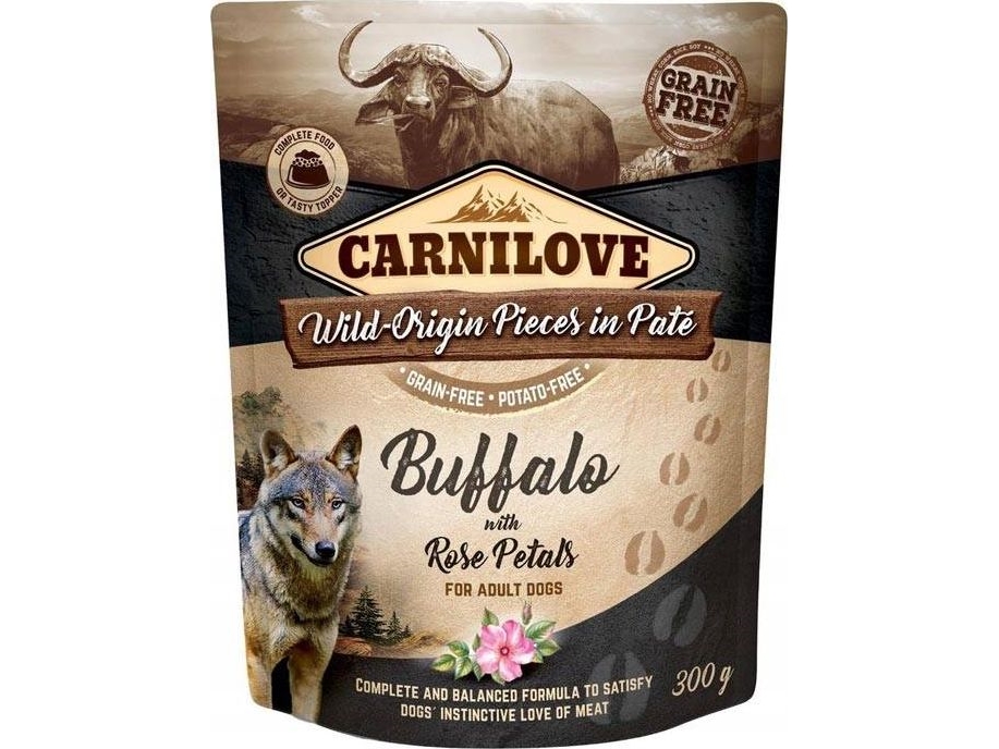Carnilove Dog Pouch Bufallo Rose Petals - Bezzbożowa Mokra Karma Dla Psa, Bawół I Płatki Róż, Saszetka 300G Uniwersalny