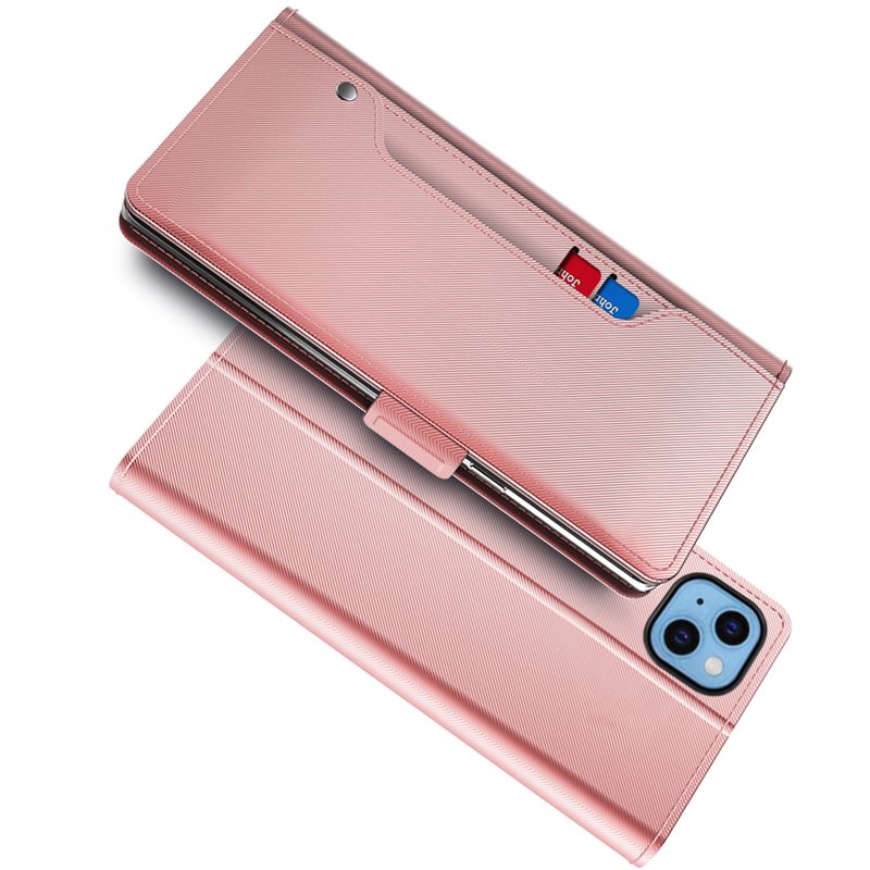 Plånboksfodral Spegel iPhone 14 Rose gold