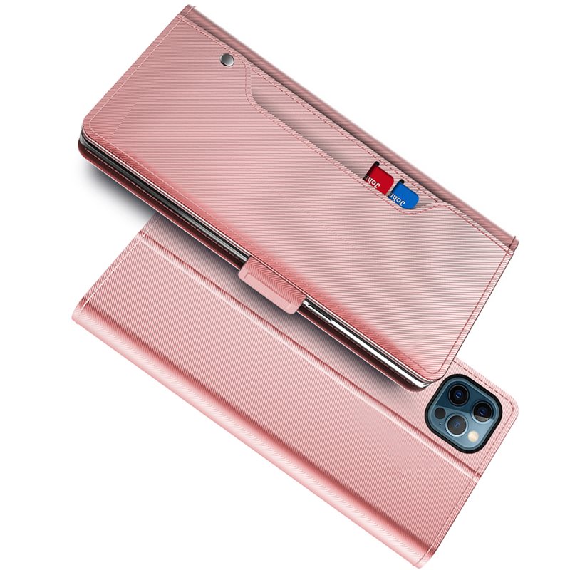 Plånboksfodral Spegel iPhone 12/12 Pro Rose gold