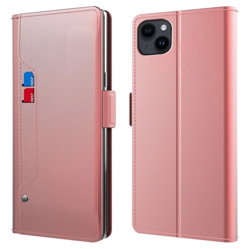 Plånboksfodral Spegel iPhone 15 Plus Rose gold