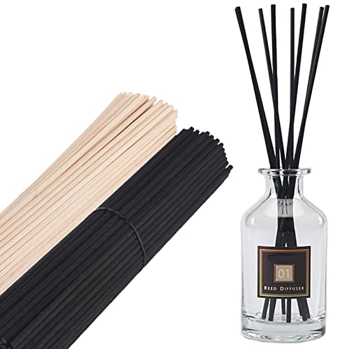ILLUVA 100 stycken naturliga rottingpinnar, reed diffuser stavar, 17 cm rotting reed pinnar träpinnar för rumsdoftdispenser (svart och naturfärg)