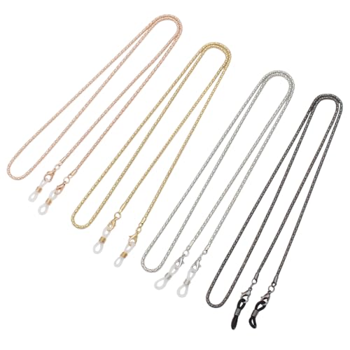 ZMREN 4 stycken Glasögonkedja Metall Glasögonkedjor Kvinnor Kedja Glasögon Kedja Halkfria Glasögonband Glasögonhållare, Roséguld, guld, svart, silver, 70 x 1 cm