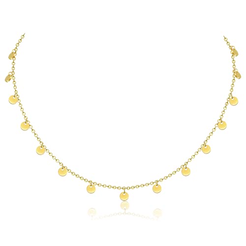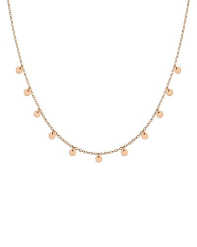 AFSTALR Kedja guld silver roséguld dam halsband med 15 runda plattor rostfritt stål kedja choker smycken gåvor för kvinnor vattentät längd 40 + 5 cm, 15 runden plättchen, Rostfritt stål